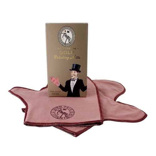 英国の伝統的な宝飾用研磨剤パウダーを含んだ金・プラチナ・ホワイトゴールド製品用ポリッシュミット。小さなジュエリーから大きな置物まで手早くクリーニング可能。コットン100%。